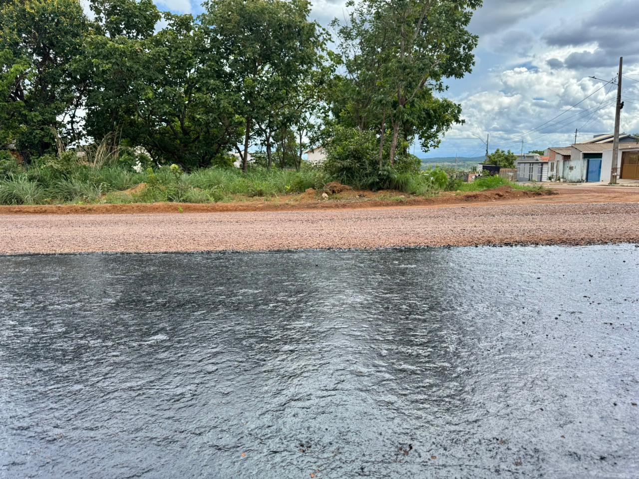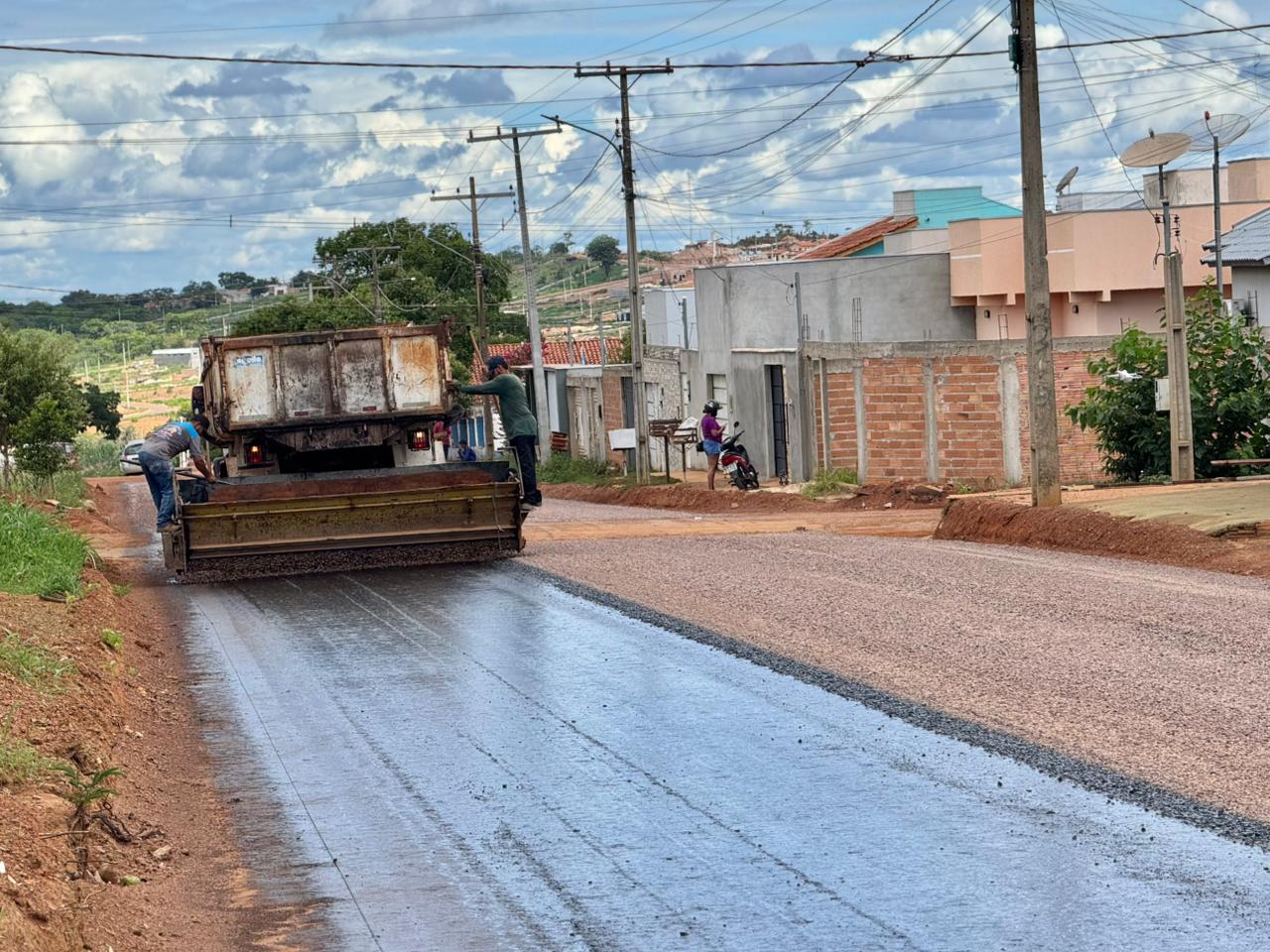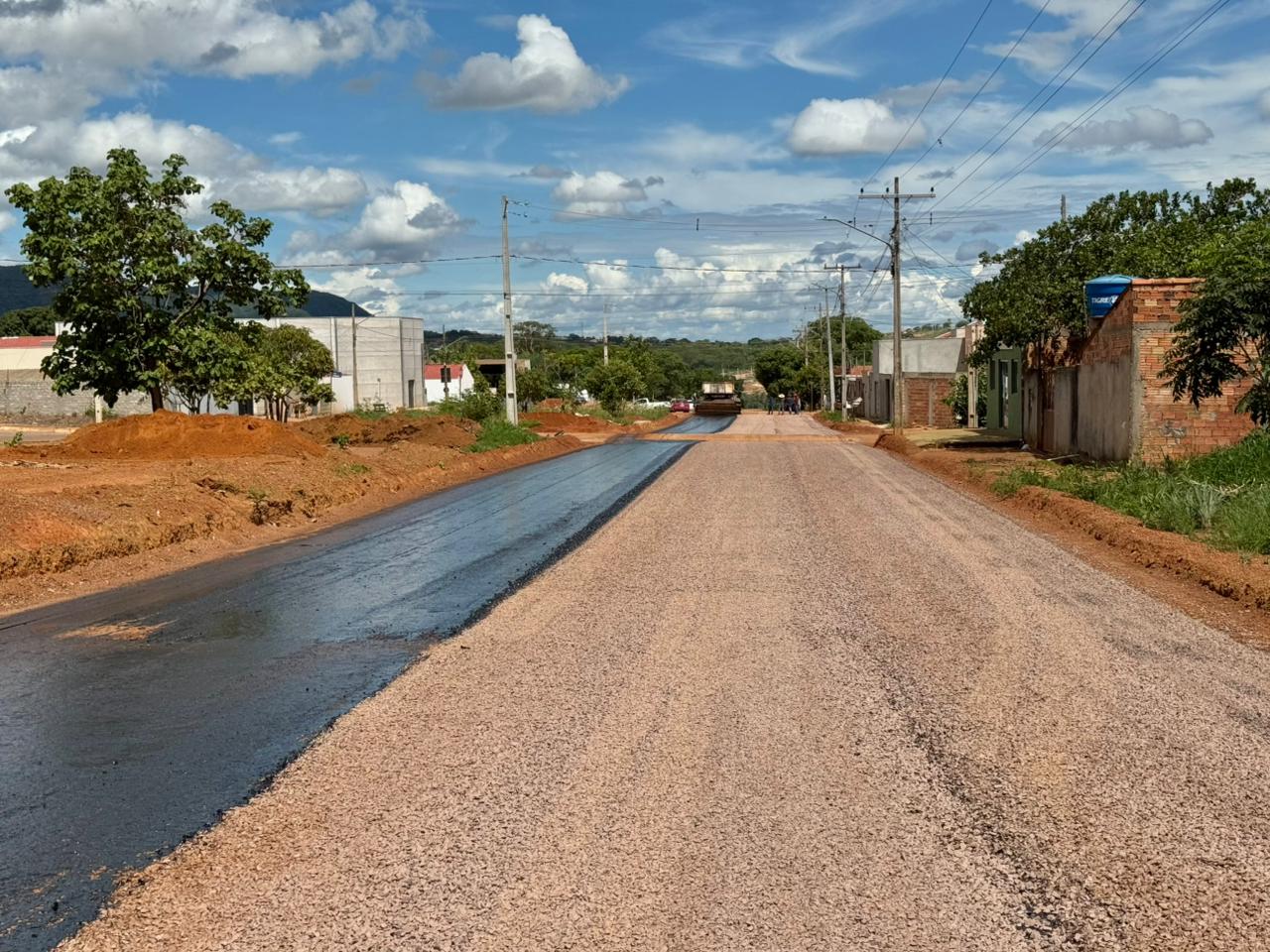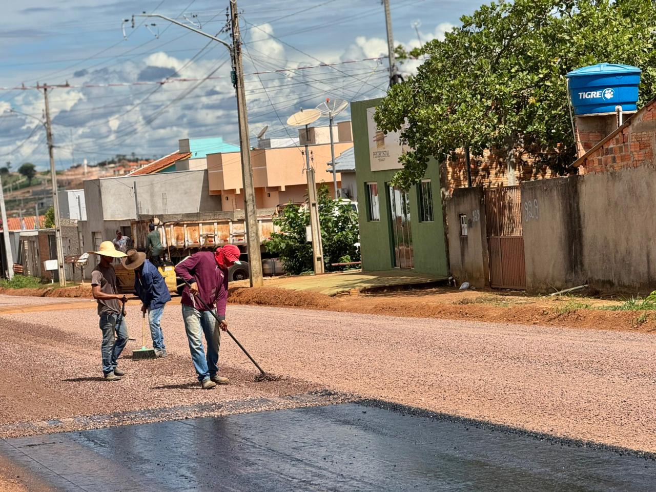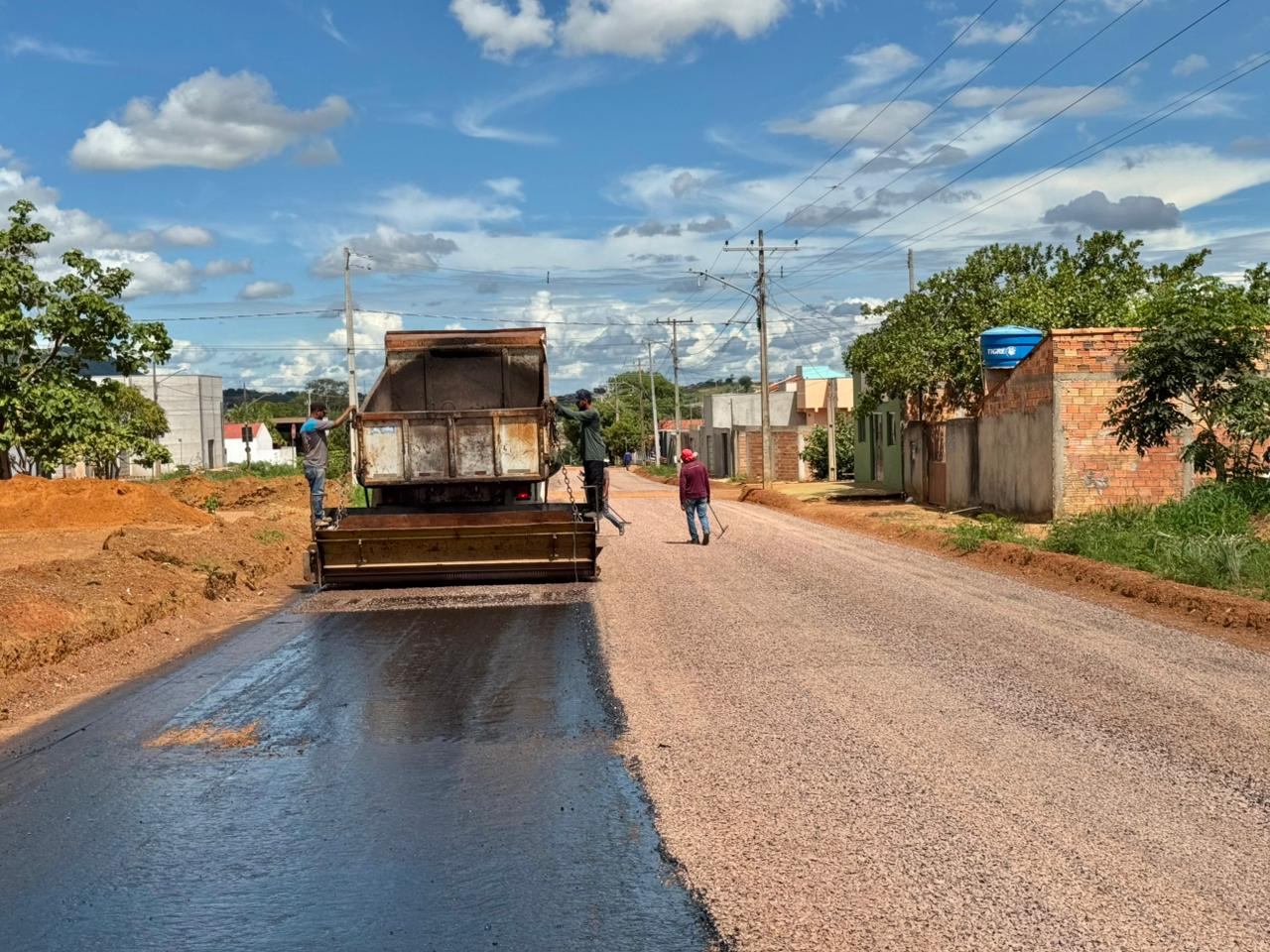 Atualmente, as equipes já realizam a capa asfáltica no trecho em obras da avenida Brasil, que consiste na aplicação de uma camada de brita e ligante asfáltico, preparando a via para o revestimento final.
