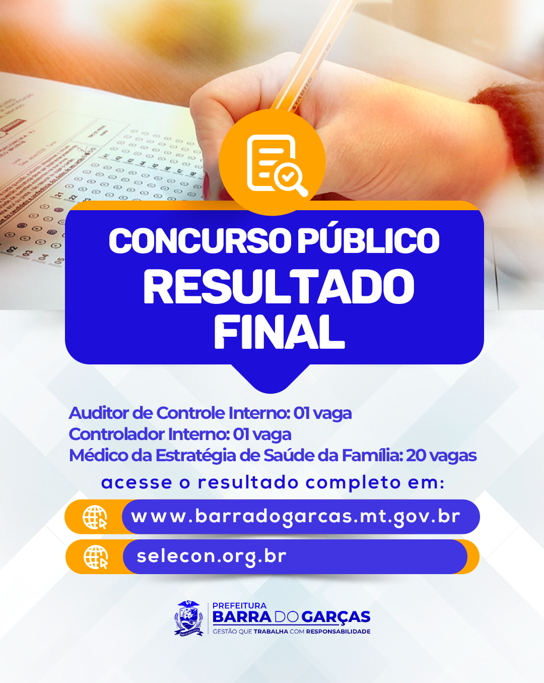 Prefeitura de Barra do Garças publica resultado final do Concurso Público
