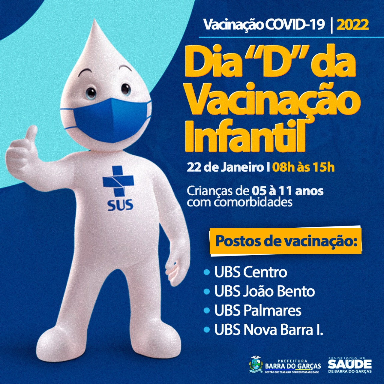 A Prefeitura de Barra do Garças, por meio da Secretaria de Saúde realizará no próximo sábado (22/01), o dia “D” de vacinação contra a Covid-19 para crianças entre 05 e 11 anos com comorbidades.