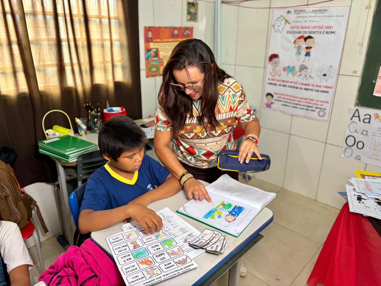 Garantir a alfabetização na idade certa aos alunos da rede municipal de ensino é uma das prioridades da gestão. No município, a alfabetização e o letramento dos alunos indígenas seguem práticas pedagógicas que reconhecem e valorizam a língua, os saberes e a forma própria de ver e viver o mundo do povo A’uwẽ (Xavante).