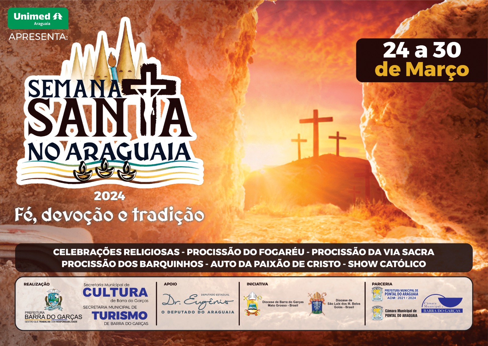 A Semana Santa no Araguaia deve reunir milhares de fiéis em celebração nos municípios de Barra do Garças, Pontal do Araguaia e Aragarças a partir deste domingo (24). Segundo a tradição cristã, esses são os dias finais de Jesus Cristo, que culminam na morte e ressurreição, período encerrado com o Domingo de Páscoa (31).