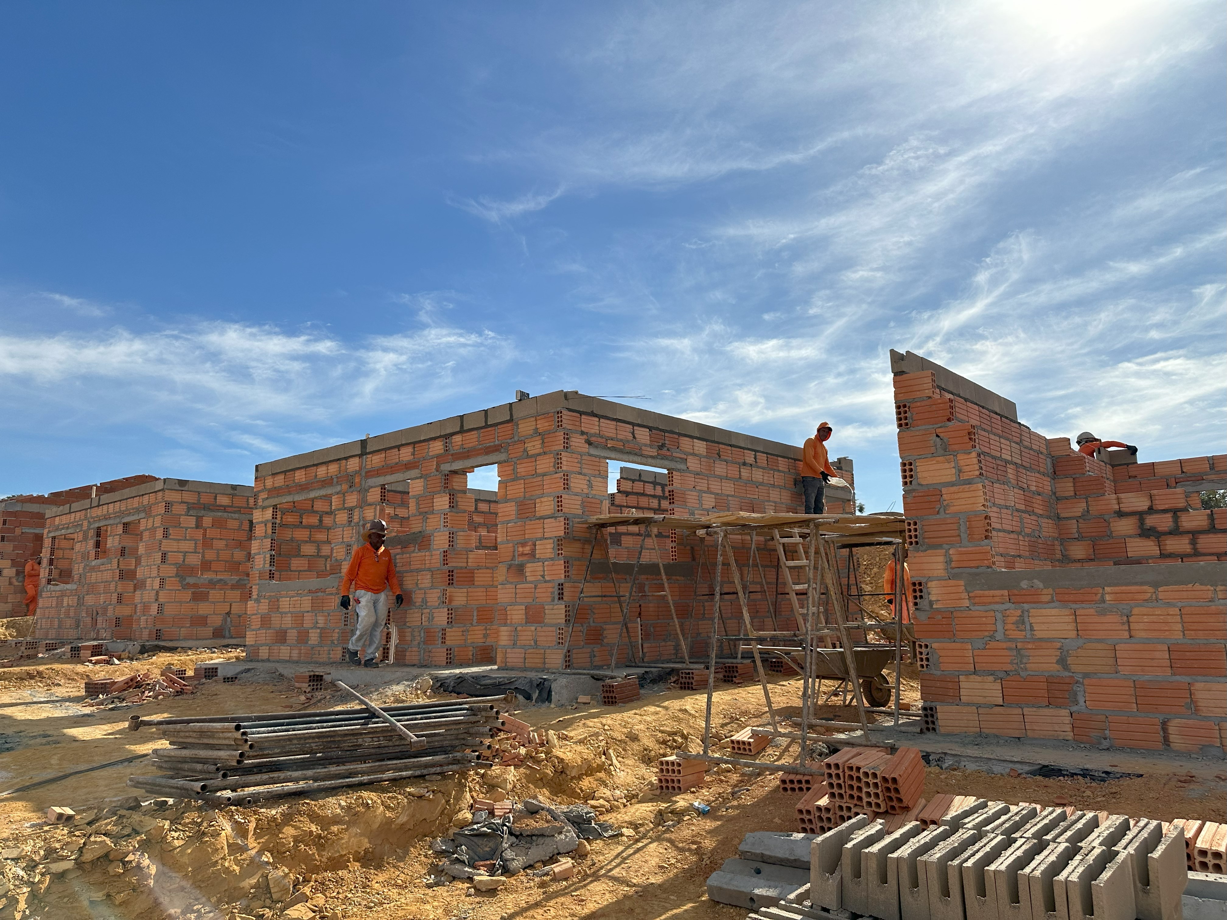 As equipes têm atuado de maneira paralela em diversos serviços, como alvenaria, cobertura, drenagem, distribuição de água, tratamento de erosões e esgotoAutor: Layra Santana | Secom-BG