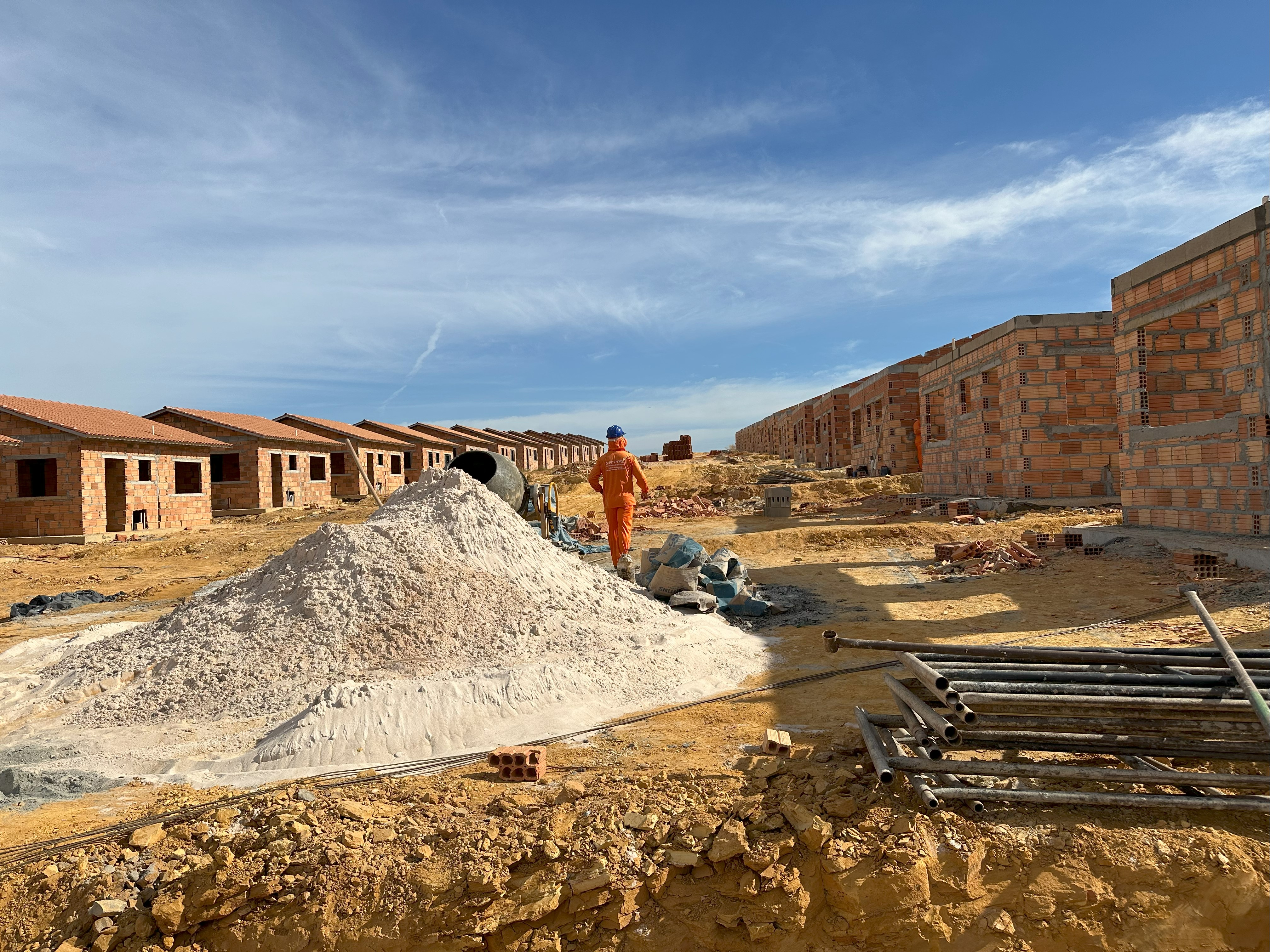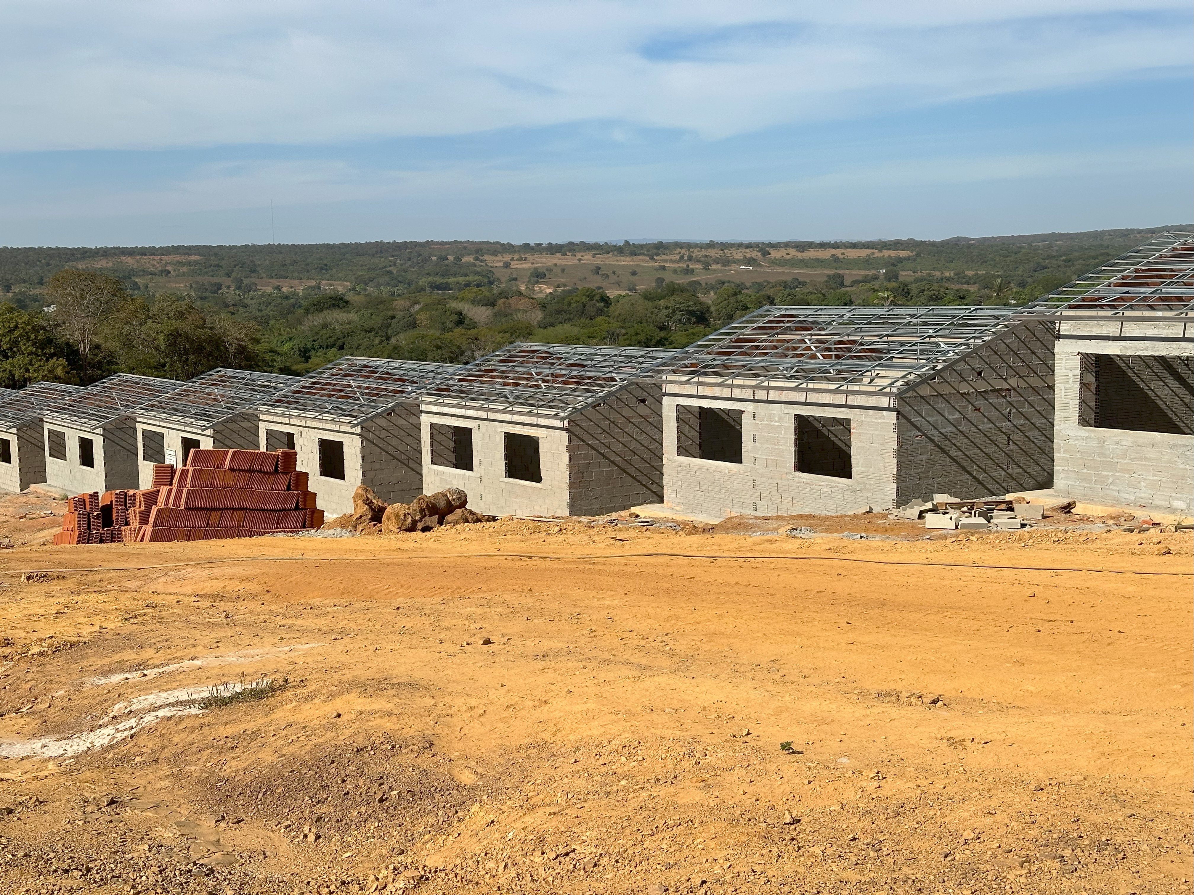 No local de obras, as equipes têm atuado de maneira paralela em diversas frentes de trabalho. Na parte de alvenaria, mais de mil residências já foram levantadas e a construção de aproximadamente cem alvenarias já foi iniciada no Residencial Carvalho II. As equipes também estão trabalhando na instalação da estrutura metálica dos telhados, cobertura, pintura e no forro das unidades que já estão prontas.