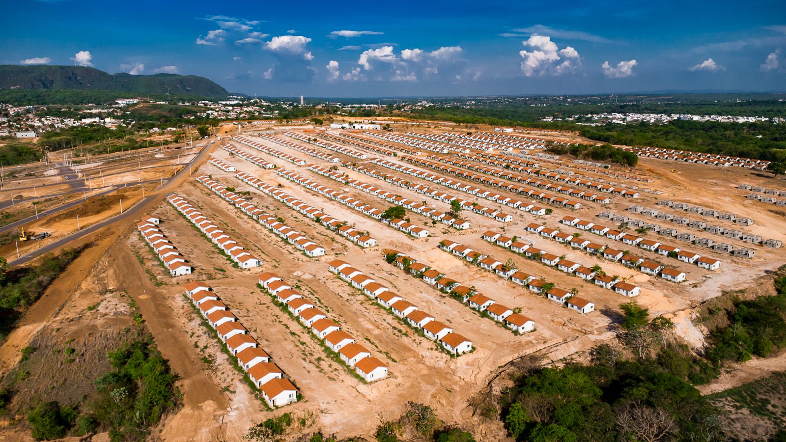 Já na infraestrutura, cerca de 90% dos trabalhos já foram concluídos, incluindo os serviços de distribuição de água, drenagem, tratamento de erosões e esgoto, entre outros serviços, com a finalidade de garantir mais infraestrutura e qualidade de vida aos futuros moradores.