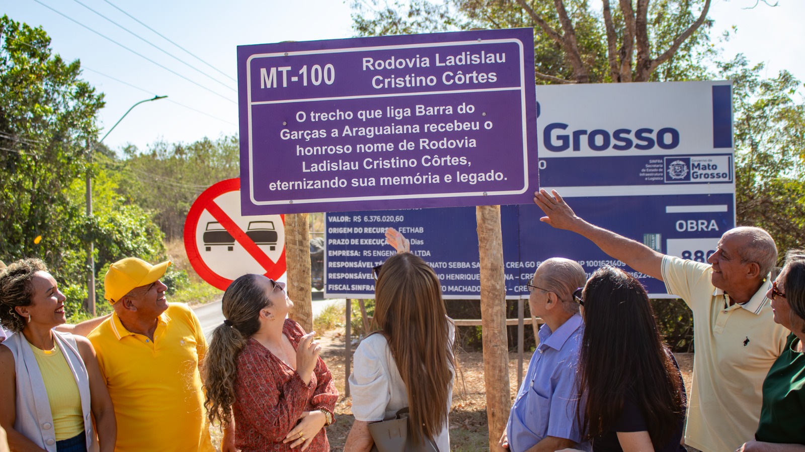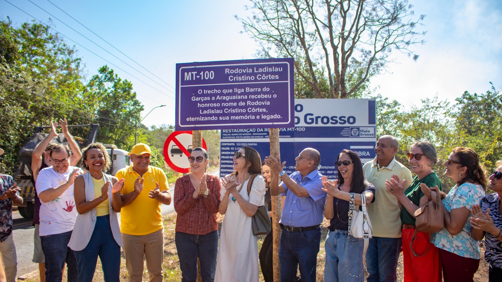 A solenidade marca o início das comemorações do centenário de nascimento de Ladislau Cristino Côrtes, que será celebrado em 2026. Emocionada, a neta Poliana Lopes Côrtes destacou a relevância do momento: “Hoje nós estamos iniciando a comemoração do centenário do Ladislau Cristino Côrtes, que será em 2026, com o descerramento da placa da MT-100. [...] É um reconhecimento ao legado do meu avô”, destacou.